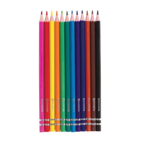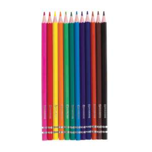 Набор состоит из 12 цветов: розовый, красный, желтый, оранжевый, салатовый, зеленый, голубой, синий, фиолетовый, коричневый, темно-коричневый, черный. Шестигранная форма сечения корпуса позволяет карандашу не скатываться с поверхности стола во время занятий рисованием. Карандаши изготовлены из пластика и имеют лакированный корпус, который при разломе не образует острые края и безопасен для детей. Легко затачиваются. Грифель диаметром 2,65 мм обладает повышенной прочностью. Все карандаши заточены и поставляются в картонной упаковке с европодвесом.