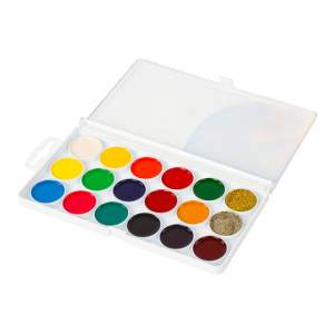 Обладают отличной укрывистостью и высокой светоустойчивостью, прекрасно смешиваются и сохраняют яркость при высыхании. Отлично ложатся на бумагу. Нетоксичны. Удобная круглая форма кюветов. Имеется отделение для кисточки. Поставляются в пластиковой коробке с европодвесом.