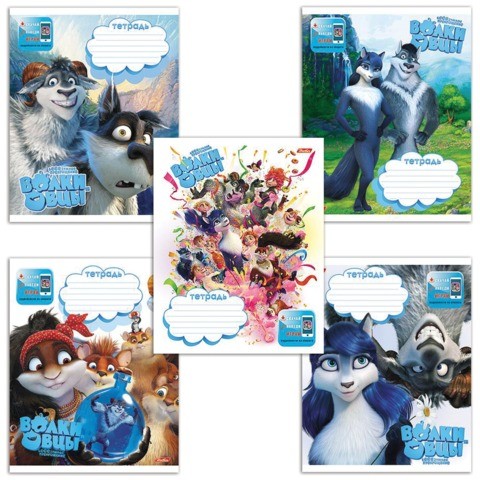 Тетрадь с героями мультфильма "Волки и Овцы: Бе-е-е-зумное превращение". Специальные метки на тетрадях позволяют попасть в игровое пространство 3D-реальности через бесплатное приложение «Волки и Овцы: Игры», доступное на смартфонах и планшетах.