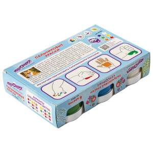 В наборе 6 ярких цветов. Краски выполнены на основе натуральных компонентов, не токсичны. Благодаря мельчайшим крупинкам в составе, имеют шероховатую текстуру, способствующую большему развитию мелкой моторики. Приятная муссовая текстура помогает краскам не растекаться по ручкам малыша, но позволяет ему делать яркие рисунки. Пальчиковые краски легко смываются с рук, без труда отстирываются с одежды. Натуральные природные красители в составе могут незначительно окрашивать некоторые поверхности. Краска упакована в пластмассовые герметичные баночки объемом 60 мл. Общий объем — 360 мл.