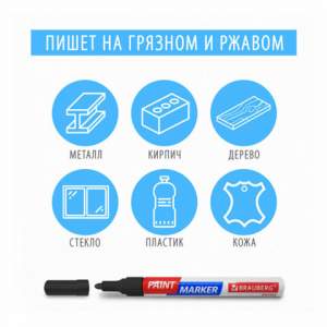 Маркер-краска лаковый BRAUBERG EXTRA предназначен для маркировки на различных поверхностях: бетон, дерево, стекло, металл, резина, пластик как в промышленных, так и в бытовых целях.