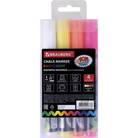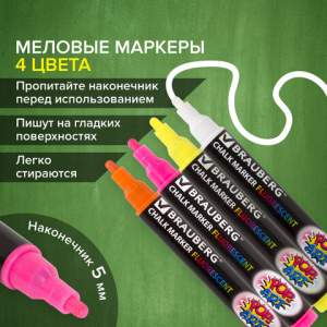 Стираемые меловые маркеры BRAUBERG «POP-ART» — оригинальный инструмент для оформления различных зон помещений. Идеальны для использования на школьных занятиях и детского творчества.