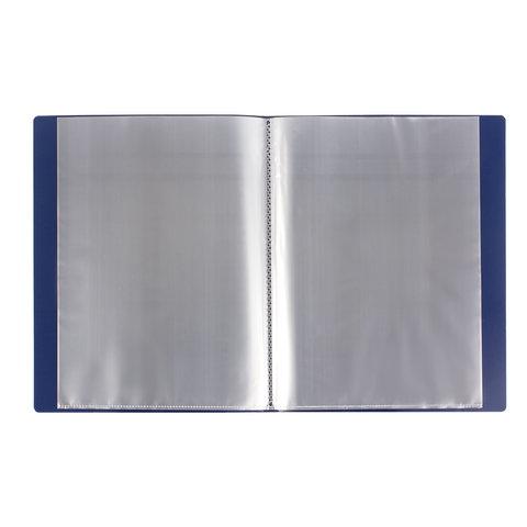 На корешке имеется карман для маркировки содержимого. Папка изготовлена из качественного пластика толщиной 0,7 мм с антибликовой линейной фактурой, а ширина корешка составляет 25 мм. Содержит 40 антибликовых вкладышей, позволяющих хранить документы формата А4 и обеспечивающих их надежную защиту от попадания влаги, пыли и прочих повреждений. Поставляется в индивидуальной упаковке.