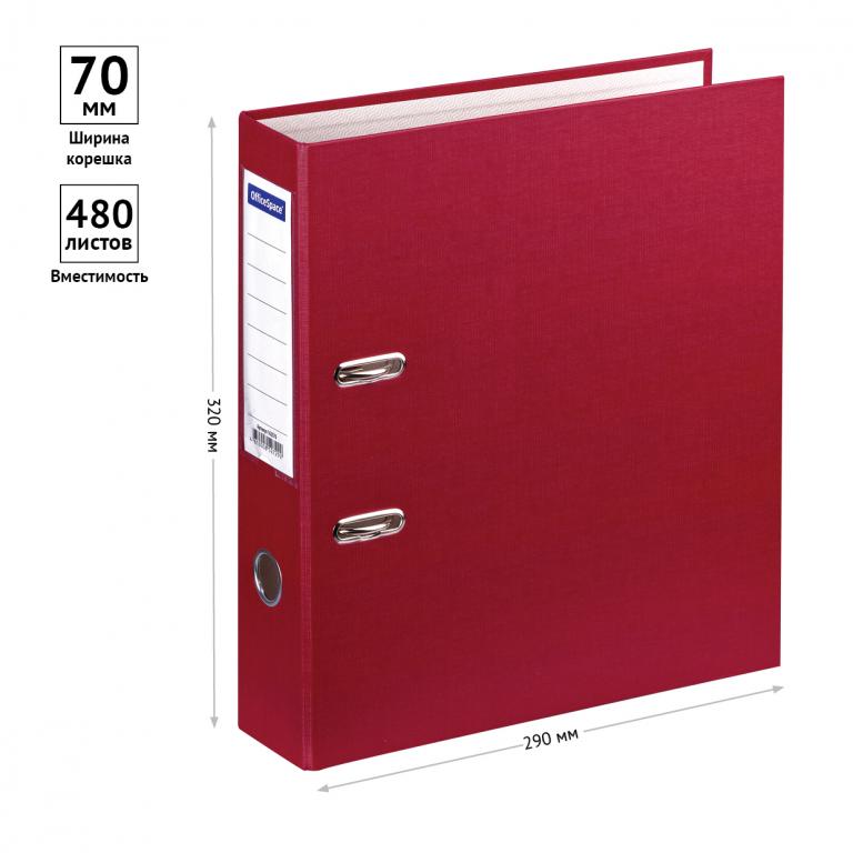 Папка-регистратор для хранения документов, металлический арочный механизм, покрытие бумвинил, карман на корешке папки. Формат А4+. Размер составляет 280*310*70мм. Ширина корешка 70 мм. Цвет бордовый.