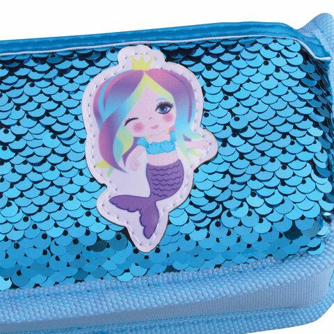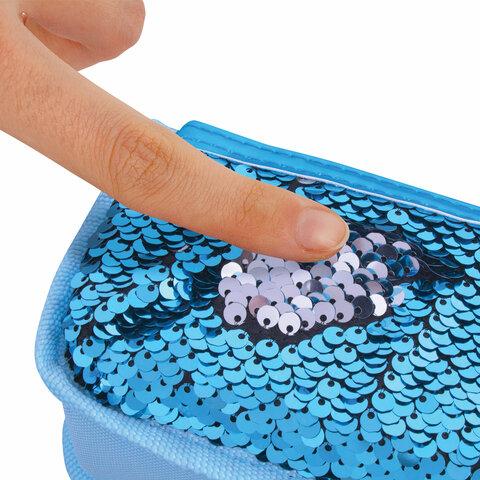 Выполнен из прочного полиэстера, декорирован реверсивными пайетками и патчем. Имеет два вместительных отделения. Застегивается на молнию с металлическим бегунком в виде сердечка. Поставляется в прозрачном полиэтиленовом пакете с картонным подвесом.