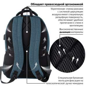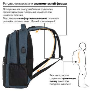 Функциональный и практичный рюкзак с отделением для ноутбука. Выполнен из прочного материала. Уплотненная вентилируемая спинка и лямки способствуют максимальному удобству при ношении рюкзака. Встроенный USB — порт поможет всегда оставаться на связи.