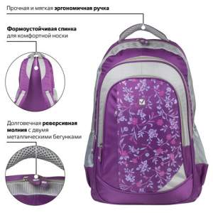 Рюкзак BRAUBERG станет идеальным спутником для старшеклассницы или студентки. Нежный узор, пастельные тона и практичное исполнение подчеркнут утонченный вкус его обладательницы, а вместительность модели позволит иметь под рукой все необходимое.