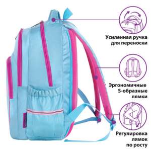 Мягкие широкие регулируемые лямки способствуют оптимальному распределению веса. Регулировка позволит использовать ранец не один год!