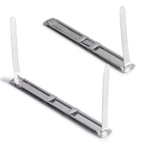 Изготовлены из металла. Механизмы надежно фиксируют бумаги. Вмещают до 400 листов. Длина ножек составляет 50 мм. Расстояние между отверстиями - 80 мм. Длина механизма - 180 мм. В комплект входит 50 штук.