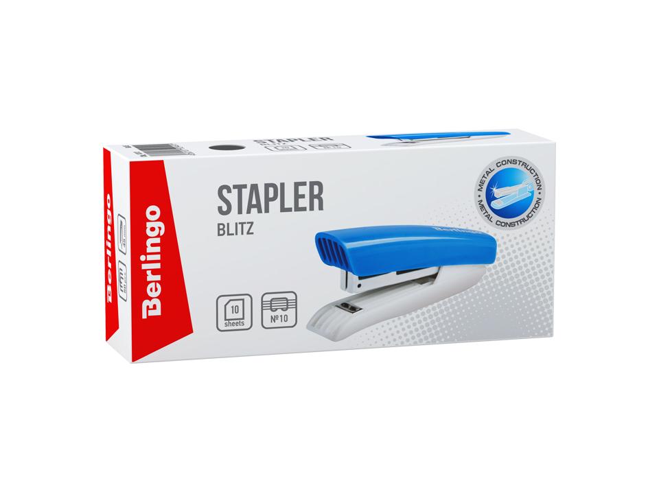 Яркий канцелярский степлер Berlingo Blitz прекрасно подходит для ежедневного использования. Степлер вмещает 50 скоб размером №10, имеет 1 тип скрепления. Сшивает до 10 листов. Глубина захвата – 45 мм.