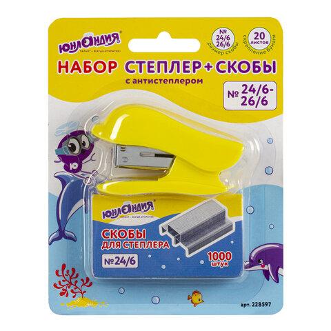 Настольный степлер ЮНЛАНДИЯ «Дельфин» с металлическим механизмом незаменим в работе с документами. Полезный аксессуар для школы и дома.
