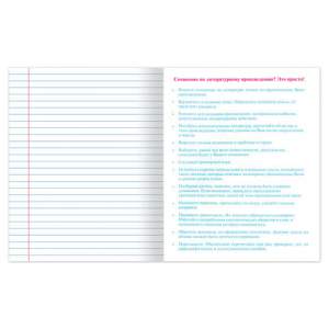 Тетрадь «Литература» формата А5 (165х205 мм) содержит 48 листов. Изготовлена из высококачественной офсетной бумаги плотностью 60 г/