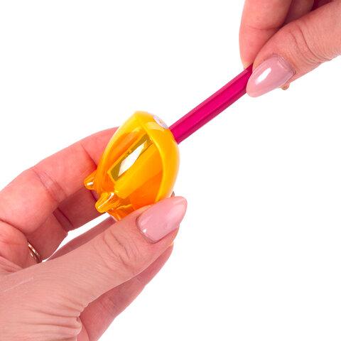 Корпус выполнен из пластика в виде морского котика. Острое лезвие обеспечивает высококачественную и точную заточку. Карандаш до 8 мм затачивается легко и аккуратно, а опилки остаются в специальном контейнере. Компактные размеры (30,8х29,4х39,5 мм) позволят поместить точилку в пенал.