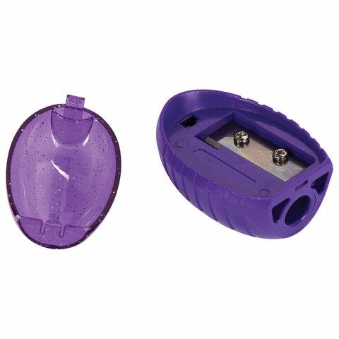Эргономичный корпус овальной формы выполнен из пластика ярких цветов ассорти. Острое стальное лезвие обеспечивает быструю и легкую заточку. Карандаш затачивается аккуратно, а опилки остаются в специальном контейнере. Размер — 28х31х46 мм.