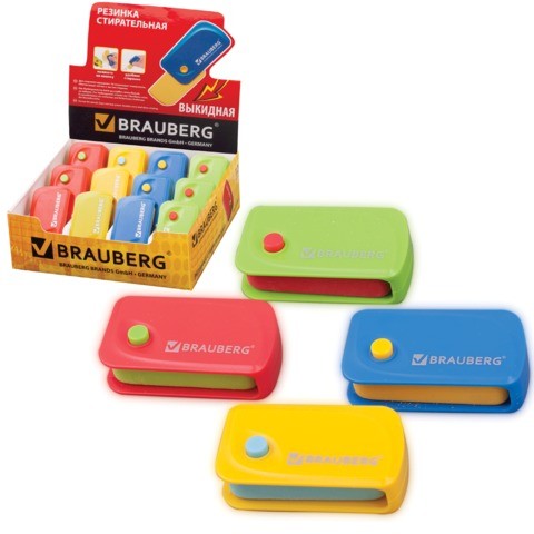 Эксклюзивная стирательная резинка в пластиковом корпусе с резиновой кнопкой и выкидным механизмом. Резинка обеспечивает лёгкое и чистое стирание без повреждения поверхности бумаги и без образования бумажной пыли.