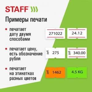 Однострочный этикет-пистолет STAFF предназначен для нанесения на этикетки цифр и символов (руб, $).