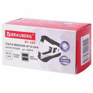 Рабочий механизм антистеплера выполнен из металла, корпус — из пластика черного цвета. Наличие фиксатора обеспечивает удобное и безопасное хранение в закрытом положении. Позволяет разжать закрепленные скобы более качественно, не нанося повреждений ни материалу, ни кончикам пальцев.