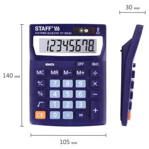 Калькулятор производит все основные арифметические действия, вычисления с памятью, вычисления с процентами, извлечение квадратного корня и возведение в степень. Вводимые данные и результаты вычислений хорошо видно на большом контрастном жидкокристаллическом дисплее. Встроенный аккумулятор и солнечная батарея, образующие единую схему питания калькулятора, позволяют устройству работать при любом освещении. Имеет компактные размеры - 140×105 мм.