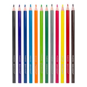 Набор состоит из 12 цветов: черный, синий, голубой, салатовый, зеленый, желтый, оранжевый, розовый, красный, серый, фиолетовый, коричневый. Трехгранная форма сечения корпуса позволяет не скатываться карандашу с поверхности стола во время занятий рисованием. Карандаши изготовлены из высококачественного материала и имеют лакированный корпус. Качество исполнения гарантирует легкую заточку. Грифель диаметром 3 мм обладает повышенной прочностью. Все карандаши заточены и поставляются в картонной упаковке с европодвесом.