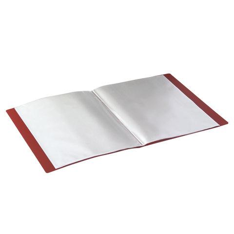 Для маркировки содержимого на корешок наклеена этикетка. Папка изготовлена из пластика толщиной 0,5 мм с антибликовой фактурой, а ширина корешка составляет 25 мм. Содержит 40 вкладышей, позволяющих хранить документы формата А4 и обеспечивающих их надежную защиту от попадания влаги, пыли и прочих повреждений.