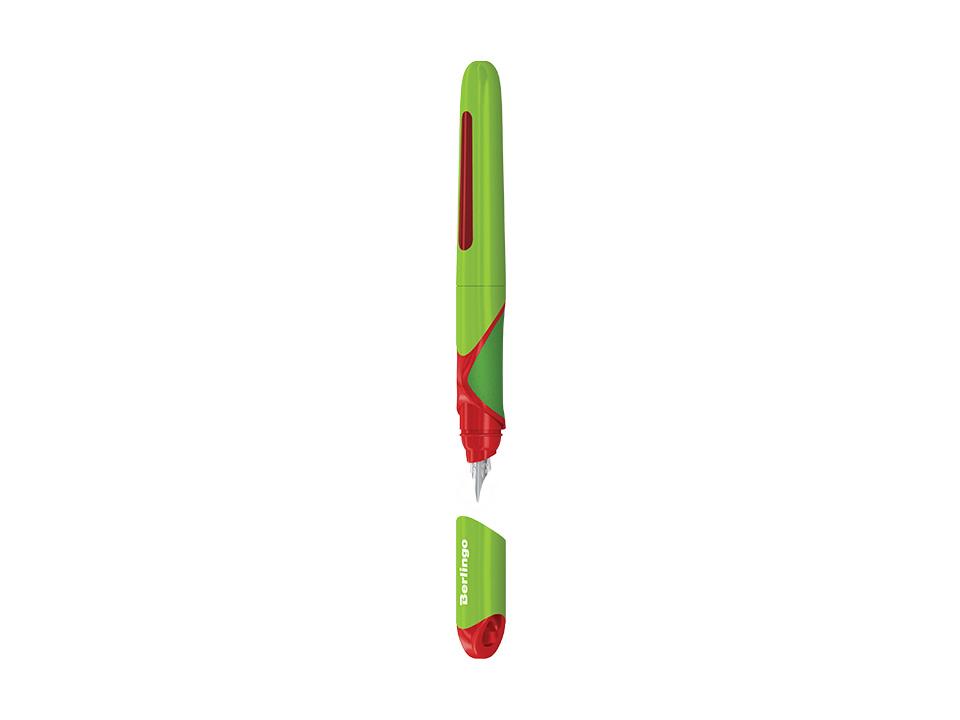Яркая перьевая ручка в пластиковом корпусе.