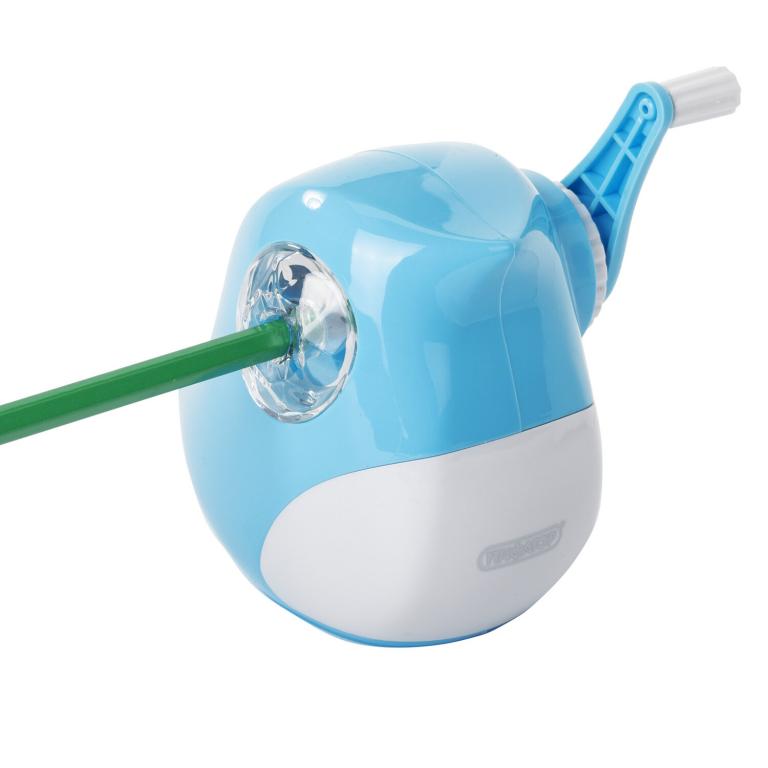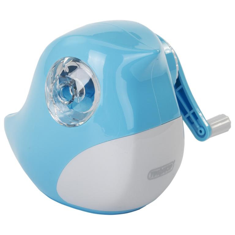 Корпус точилки выполнен из пластика. Вращающийся роликовый нож из высококачественной стали обеспечивает быструю и острую заточку. Точилка имеет одно отверстие и вместительный контейнер для сбора стружки. Диаметр затачиваемого карандаша - 8 мм. Размер: 110×115×93 мм. Если встряхнуть точилку, то она издаст птичье пение, что удивит и порадует любого ребенка.