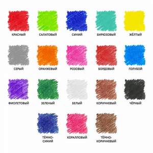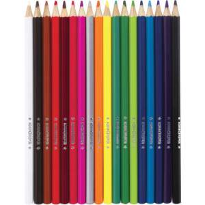 Набор состоит из 18 цветов: черный, фиолетовый, синий, голубой, темно-синий, салатовый, зеленый, бирюзовый, желтый, оранжевый, серый, коралловый, розовый, коричневый, красный, бордовый, белый, темно-коричневый. Яркие цвета развивают цветовосприятие ребенка. Шестигранная форма сечения корпуса позволяет не скатываться карандашу с поверхности стола во время занятий рисованием. Они изготовлены из древесины ценных пород и имеют лакированный корпус. Высокосортная древесина и качество исполнения гарантируют легкую заточку. Мягкий грифель качества «А» с диаметром 3 мм обладает повышенной прочностью, не ломается и не крошится при заточке. Все карандаши заточены и поставляются в картонной упаковке с европодвесом.