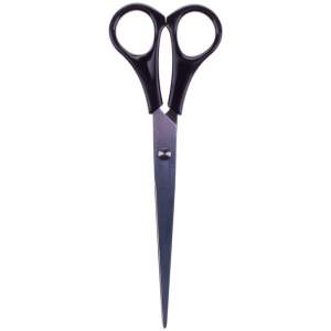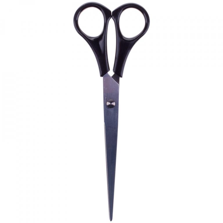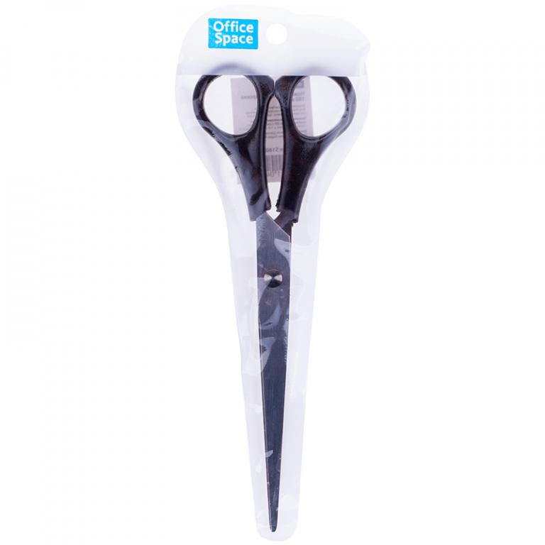 Ножницы офисные, длина 18 см, лезвия с заточкой, черные ручки, упакованы в ПВХ чехол с европодвесом