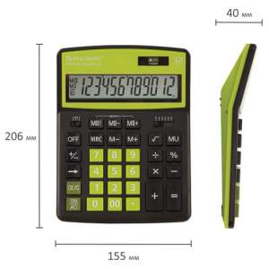 Калькулятор производит все основные арифметические действия: возведение в степень, вычисления с процентами, извлечение квадратного корня. Незаменим для бухгалтеров благодаря наличию клавиш двойной памяти, «00» и MU для расчетов налогов и торговой наценки. Переключатели округления и положения десятичного знака позволяют производить нужные настройки. Большой двенадцатиразрядный дисплей отображает большие значения с высокой точностью округления. Встроенный аккумулятор и солнечная батарея позволяют калькулятору работать при любом освещении, а клавиша выключения OFF и функция автоматического отключения (через 8-10 минут бездействия) позволяют максимально продлить срок его службы без замены батареи.
