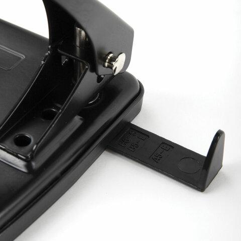 Полностью металлический дырокол пробивает до 25 листов бумаги. Благодаря качественным пробойникам обеспечивает легкое и точное пробивание бумаги. Количество пробиваемых отверстий — 2, диаметр каждого — 6 мм, расстояние между отверстиями — 8 мм. Метка центрирования поможет ровно разместить листы, а ограничительная линейка — пробить отверстия в нужных местах. Оснащен контейнером для сбора мусора, а также блокиратором для компактного хранения. Классический черный цвет отлично впишется в любой интерьер.