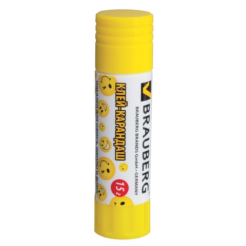 Клей-карандаш BRAUBERG с клеящим полимерным компонентом для склеивания бумаги, картона, фото. Быстро высыхает. Не деформирует бумагу. Безопасен для здоровья. Увеличенный срок годности — 3 года. Туба и дисплей украшены смешными рожицами.