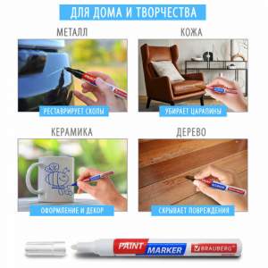 Маркер-краска лаковый BRAUBERG EXTRA предназначен для маркировки на различных поверхностях: бетон, дерево, стекло, металл, резина, пластик как в промышленных, так и в бытовых целях.