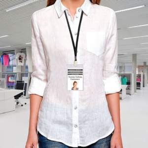 Бейдж на текстильной черной ленте используется для размещения именных карточек, пропусков, пластиковых карт. Карман из мягкого прочного пластика гарантирует долгий срок службы. Закрепляется лентой 45 см. Размер вкладыша 90х60 мм.