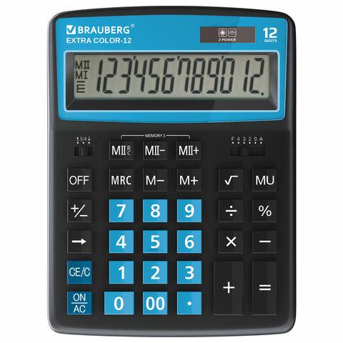 Настольный калькулятор BRAUBERG ULTRA COLOR-12-BKBU. Большой яркий дисплей, устойчивый корпус с прорезиненными ножками и крупная клавиатура с цветной дифференциацией позволяют работать эффективнее.