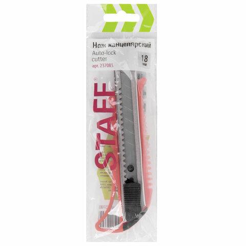 Благодаря своей обтекаемой форме нож удобно держать в руке. Пластиковый корпус гарантирует безопасность применения. Автофиксатор позволяет закрепить лезвие в нужном положении с помощью защелки. Для того, чтобы хранить и переносить инструмент было проще, в корпусе имеется небольшое отверстие. Нож усиленный с металлическими направляющими, которые надежно удерживают лезвие шириной 18 мм и позволяют выдерживать большую нагрузку.