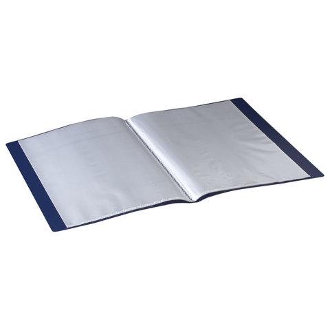 На корешке имеется карман для маркировки содержимого. Папка изготовлена из качественного пластика толщиной 0,7 мм с антибликовой линейной фактурой, а ширина корешка составляет 16 мм. Содержит 20 антибликовых вкладышей, позволяющих хранить документы формата А4 и обеспечивающих их надежную защиту от попадания влаги, пыли и прочих повреждений. Поставляется в индивидуальной упаковке.