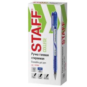 Стираемая ручка STAFF пишет специальными гелевыми чернилами, которые становятся невидимыми при нагревании до 60 °С и выше. Нагрев достигается ластиком, встроенным в корпус ручки. Написанное можно восстановить при температуре ниже –18 °С.