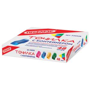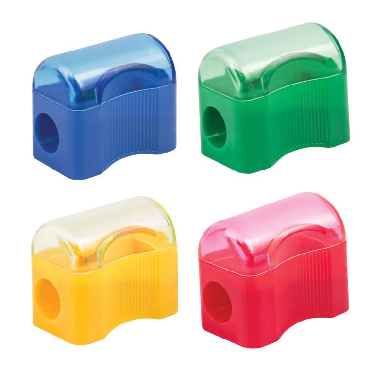 Эргономичный корпус прямоугольной формы выполнен из пластика. Яркие цвета ассорти. Острое стальное лезвие обеспечивает быструю и легкую заточку. Карандаш затачивается аккуратно, а опилки остаются в специальном контейнере. Размер - 26×22×16 мм.