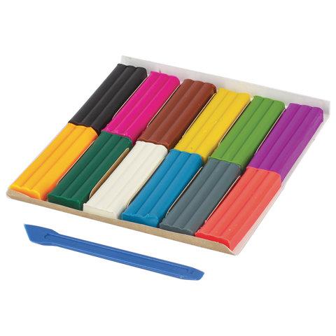 В наборе 12 ярких цветных брусков прямоугольной формы. Поставляется в комплекте со стеком, с помощью которого ребенок может разделять пластилин на части или наносить орнамент на свои поделки.
