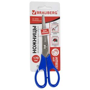 Ножницы BRAUBERG «Left hand» с двусторонней заточкой лезвий изготовлены специально для левшей. Они здесь развернуты под соответствующую руку. Это практичный, надежный и эффективный инструмент для обработки бумаги и картона.