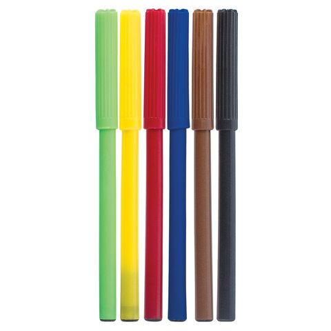 Обладают яркими цветами в количестве 6 штук. Удобная круглая форма корпуса, длина которого 131 мм, а диаметр - 7 мм. Благодаря толщине линии письма 1 мм и диаметру пишущего узла 1,8 мм процесс раскрашивания становится легким. Длина письма составляет 400 м: такого расхода хватит надолго. Фломастеры изготовлены на водной основе, поэтому они безопасны и легко смываются с большинства материалов и кожи. Полипропиленовый корпус значительно продлевает срок службы фломастеров. Колпачок имеет специальные прорези для вентиляции, которые способствуют прохождению воздуха при попадании в дыхательные пути малыша. Рекомендованы для детей от 3-х лет.