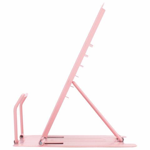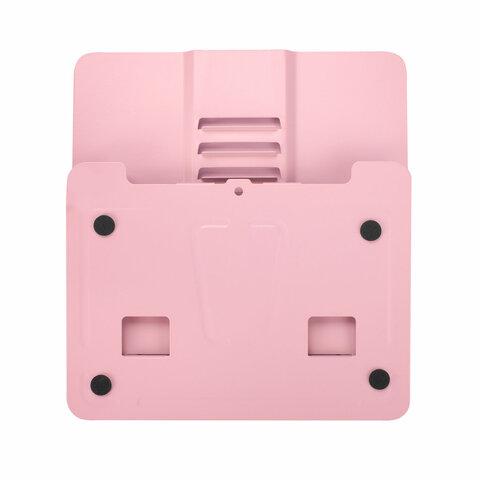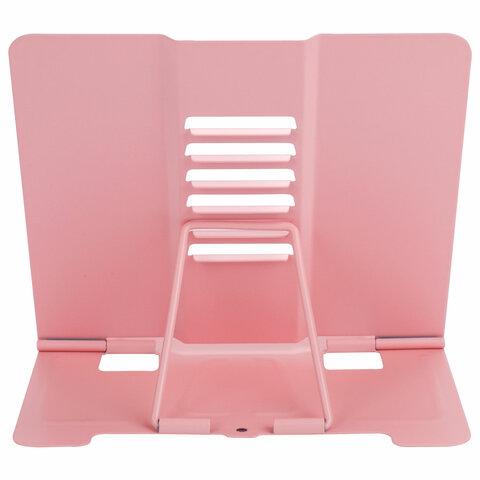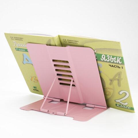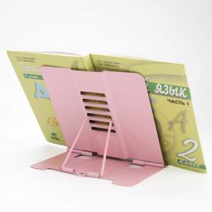 Подставка полностью изготовлена из металла, поэтому отлично подойдет для надежной фиксации тяжелых и объемных учебных материалов и книг. Оригинальный дизайн понравится как младшим школьникам, так и школьникам среднего звена, увлекающимся футболом. Регулируемый угол наклона обеспечивает удобство при работе с текстом, облегчает чтение и подготовку домашней работы. Размер подставки — 22х20 см. Цвет — розовый.