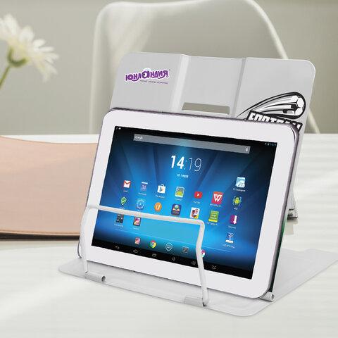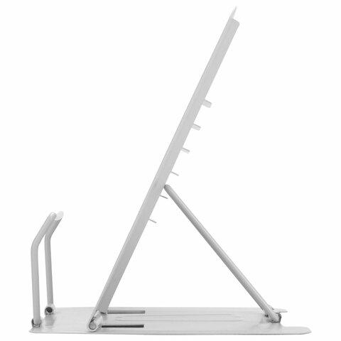 Подставка полностью изготовлена из металла, поэтому отлично подойдет для надежной фиксации тяжелых и объемных учебных материалов и книг. Оригинальный дизайн понравится как младшим школьникам, так и школьникам среднего звена. Регулируемый угол наклона обеспечивает удобство при работе с текстом, облегчает чтение и подготовку домашней работы. Размер подставки — 22х20 см. Цвет — серый.