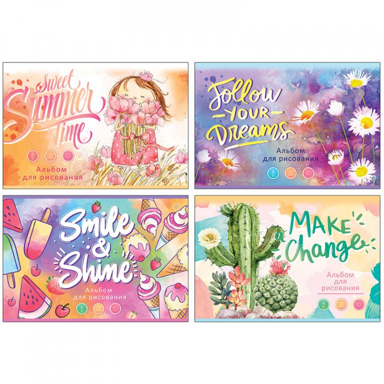 Альбом для рисования BG «Акварельные рисунки», эконом, поставляется с ассорти дизайнов формата А4 и размера 205*295 мм. Товар с обложкой из мелованного картона состоит из 32 листов офсетной бумаги 90% белизны. Тип скрепления изделия – гребень. Плотность бумаги альбома составляет 100 г/кв.м, что соответствует техническому регламенту «О безопасности продукции, предназначенной для детей и подростков». Альбом с женским дизайном отлично подходит для рисования различными типами красок, фломастерами, цветными и чёрно-графитными карандашами, гелевыми ручками. Без возрастных ограничений. • Вид товара: альбом для рисования;