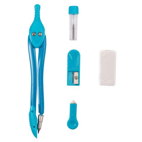 Циркуль длиной 135 мм имеет несгибаемые штанги и пластиковый защитный колпачок для иглы. Изготовлен из металла. Цвет — ассорти (без возможности выбора цвета).