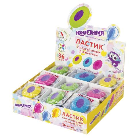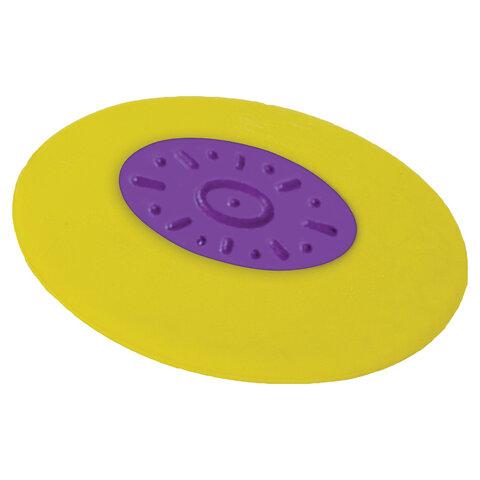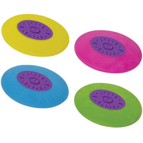 Имеет овальную форму с пластиковым держателем фиолетового цвета. Поставляется в четырех цветах ассорти в картонном дисплее. Ластик обеспечит лёгкое и чистое стирание без повреждения поверхности бумаги и без образования бумажной пыли. Размер — 42х30х9 мм. Единица товара упакована в индивидуальный пакет со штрихкод