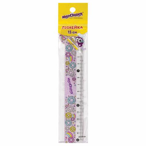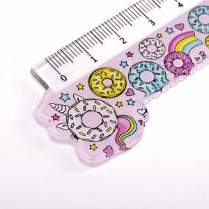 Прозрачная фигурная линейка c волнистым краем и принтом в виде сладостей. Имеет безопасные закруглённые углы. Длина шкалы составляет 15 см. Линейка обладает четкой разметкой, что делает ее удобной в использовании. Упакована в пакет с европодвесом.
