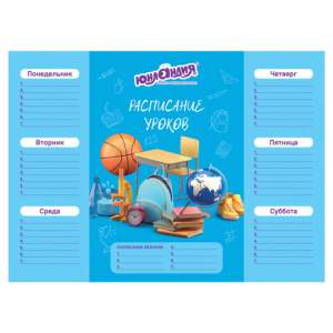 Расписание уроков ЮНЛАНДИЯ разработано специально для детей школьного возраста. Оно идеально подходит для планирования и подготовки заданий в домашних условиях. Поставляется в четырех вариантах дизайна (без возможности выбора).