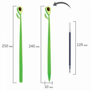 Шариковая ручка серии FUNNY YUMMY с мягким силиконовым корпусом и оригинальным дизайном в виде авокадо. Благодаря привлекательному дизайну ее не захочется выпускать из рук. Диаметр игольчатого пишущего узла, равный 0,7 мм, создает линию письма, равную 0,35 мм. Длина сменного стержня составляет 129 мм. Цвет чернил — синий.