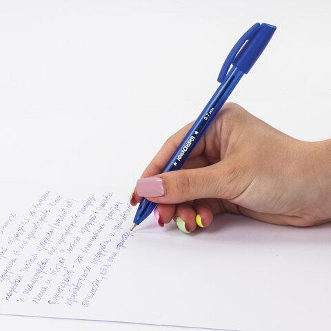 Диаметр пишущего узла 0,7 мм создает тонкую линию письма, равную 0,35 мм, Трёхгранный корпус синего тонированного цвета для комфортного письма.